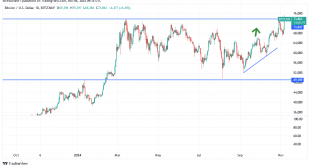 خلال تداولات اليوم الاربعاء. أرتفعت عملة البيتكوين نحو 75000 دولار ، لتصل إلى أعلى مستوياتها على الإطلاق وذلك مع أكتساب المرشح الجمهوري دونالد ترامب تقدمًا مبكرًا في السباق الرئاسي الأمريكي. هذا الشارت من منصة tradingview وطوال حملته، كان ترامب مؤيدًا صريحًا لصناعة العملات المشفرة، وتعهد بجعل الولايات المتحدة “عاصمة العملات …