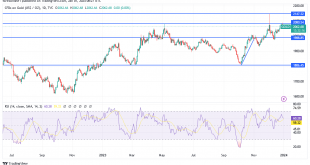 خلال تداولات الاسبوع الاول من العام الجديد 2024 تراجع سعر الذهب (XAU/USD) بخسائر طالت مستوى الدعم 2025 دولار للاوقية حيث تبنى المتداولون معنويات العزوف عن المخاطرة. وبنهاية جلسة الجمعة حاول الثيران تعافى الاسعار ولكن المكاسب لم تتعدى مستوى المقاومة 2065 دولار للاوقية وأغلق سعر الذهب التداولات مستقرا حول مستوى 2045 …