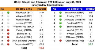 أفادت التقارير أن صناديق الاستثمار المتداولة في العملة الرقمية إيثريوم الفورية تحولت إلى اللون الأخضر مع تدفقات واردة كبيرة بينما شهدت صناديق الاستثمار المتداولة في بيتكوين تدفقات خارجة في 30 يوليو. وفى هذا الصدد فقد كشفت منصة التحليلات البارزة على السلسلة Spot On Chain أن صناديق الاستثمار المتداولة في بيتكوين …