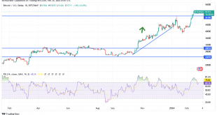 نجح الثيران فى أختبار مستوى المقاومة 53.000 دولار لسعر زوج العملات البيتكوين مقابل الدولار الامريكى BTC/USD ويستقر حول مستوى 51700 دولار وقت كتابة التحليل حيث يترقب الثيران مزيد من التحفيز للاستمرار فى الاتجاه الصعودى الحالى وكما ذكرت من قبل بأن المقاومة النفسية 50.000 دولار تدعم أستمرار نظرة الصعود. وبالنسبة لسعر …